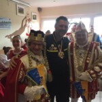 Höhepunkt war der Besuch des aktuellen Dreigestirns Prinz Marc I., Jungfrau Uli und Bauer Ralf (der leider gesundheitsbedingt nur in Gedanken dabei war) inklusive Gefolge, das u.a. aus dem Kindertanzcorps, den Rot-Weissen Eselchen, bestand.